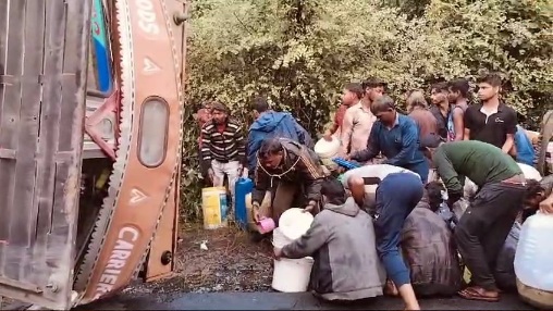 घटना बलरामपुर जिले के फूलीडूमर घाटी में घटी जहाँ एक अनियंत्रित डीजल टैंकर के पलट जाने से भारी अफरातफरी मच गई. घटना के बाद आग लगने का खतरा था जिसे नजरअंदाज कर ग्रामीण अपनी जान जोखिम में डालकर डीजल लूटने में लगे रहे देखते ही देखते ग्रामीणों का हुजूम लग गया सभी अपने अपने घरों से बर्तन बाल्टी लेकर डीजल एकत्रित करने लगे.