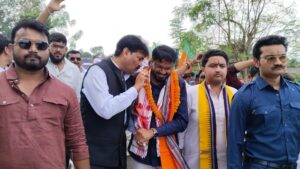 भाजयुमो प्रदेश अध्यक्ष का जशपुर प्रवास के दौरान बगीचा तहसील चौक में बीजेपी युवा मोर्चा के कार्यकर्ताओं ने गाजे बाजे के साथ फूल माला पहनाकर भव्य स्वागत किया। इस दौरान जिला महामंत्री मुकेश शर्मा, युवा मोर्चा जिलाध्यक्ष शौर्य प्रताप जूदेव और मंडल युवामोर्चा ऋत्विक जैन के साथ सैकड़ो कार्यकर्ता उपस्थित रहे।