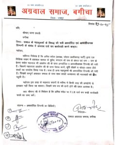 जोहार छत्तीसगढ़ पार्टी के अध्यक्ष अमित बघेल द्वारा महाराज श्री अग्रसेन के ऊपर कथित रूप से अभद्र टिप्पणी करने के विरोध में अग्रवाल सभा के लोगों ने शहर में रैली निकाली। और बगीचा थाने पहुंचे और अमित बघेल के खिलाफ अपराध दर्ज करने की मांग की।