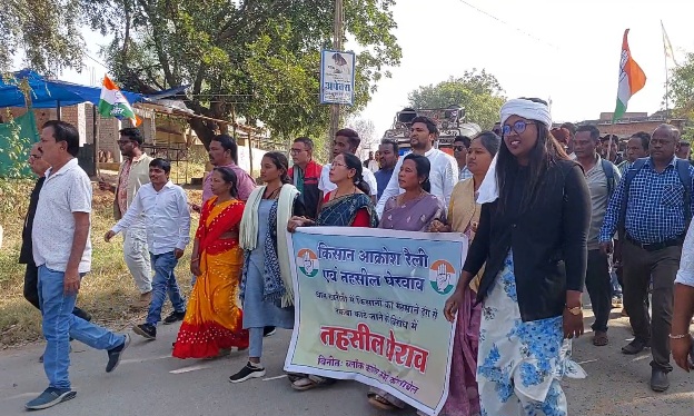 जशपुर जिले में किसानों के धान का रकबा घटाए जाने और पंजीयन का समय बढ़ाने के लिए आज कांग्रेस पार्टी ने कांसाबेल में किसान आक्रोश रैली निकालकर विरोध प्रदर्शन किया। रैली कांसाबेल बस स्टैंड से शुरू होकर तहसील कार्यालय पहुँची जहां कांग्रेसियों ने किसानों के साथ तहसील कार्यालय का घेराव किया और सरकार के खिलाफ नारेबाजी कर विरोध जताया। कांग्रेस पार्टी ने किसानों को हो रही परेशानी को लेकर आज एसडीएम को ज्ञापन सौंप कर मांग किया है कि किसानों को धान बेचने में आ रही परेशानियों का निराकरण करने पंजीयन की तिथि बढ़ाया जाए। नही तो आज यह रैली कांसाबेल से शुरू हुई है जल्द किसानों का सही रकबा एग्रिस्टिक में सुधार नही सुधार किया गया और किसानों के समस्याओं को नही सुधारा गया तो हम पूरे किसानों के साथ उग्र आंदोलन करेंगे। सरकार को किसानों के खून पसीने की उपज का एक एक दाना धान खरीदना पड़ेगा। नही तो पूरे प्रदेश में किसानों के साथ धरना प्रदर्शन रैली कर सरकार का विरोध किया।