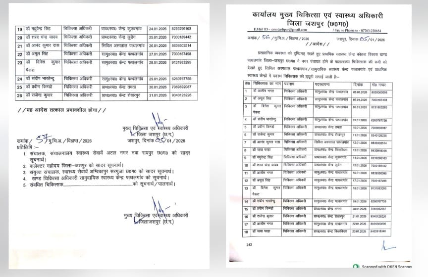 ब्रेकिंग जशपुर – प्राथमिक स्वास्थ्य केंद्र कोतबा मे रोज बैठेंगे अलग अलग डॉक्टर,यह अनोखा आदेश बना चर्चा का विषय….