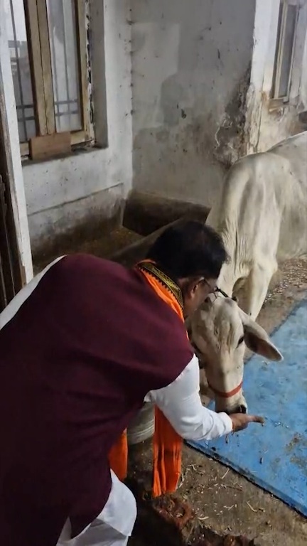 मुख्यमंत्री श्री विष्णु देव साय ने आज अपने निवास में चंद्र ग्रहण से पहले गौ माता को रोटी गुड खिलाने की परंपरा निभाई। गाय को गुड़ खिलाने से ग्रहण के अनिष्ट प्रभाव कम होते हैं। उन्होंने इस अवसर पर कहा कि गौ सेवा से उन्हें सच्ची शांति और सकारात्मक ऊर्जा मिलती है।