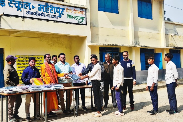 बता दें कि बढ़ती ठंड ने बच्चों के साथ पालकों की भी चिंता बढ़ा दी है कि बच्चे ठंड से कैसे सुरक्षित रह सके। बच्चे दूर दूर से जंगलों के बीच से आते हैं जहां ठंडी भी काफी होती है। जिसको देख महेशपुर हाई स्कूल के शिक्षकों ने सराहनीय कार्य करते हुए स्वयं के व्यय से छात्रों को ठंड से राहत दिलाने जैकेट वितरण किया गया। उक्त जैकेट का वितरण शाला समिति के सदस्य एवं भाजपा युवामोर्चा महा मंत्री श्री महेंद्र यादव, समिति सदस्य एवं सांसद प्रतिनिधि बलि राम राजवाड़े, सरपंच प्रतिनिधि मनमोहन सिंह जी के हाथों कराया गया। इस मौके पर पालक करमचंद कुजूर, सरोधन लकड़ा, कालीचरण यादव,शिक्षक असफाक अली, जय सिंह आदि उपस्थित रहे।