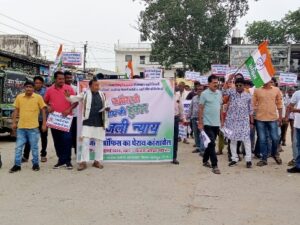 कांसाबेल कांग्रेसियों ने निकाली बिजली न्याय यात्रा और बिजली ऑफिस किया घेराव।