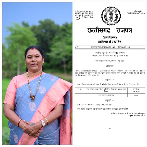 आपको बता दे कि पिछले दिनों मुख्यमंत्री विष्णुदेव साय पत्थलगांव के किलकिलेश्वर धाम पहुंचे थे जहां पत्थलगांव विधायक गोमती साय ने पत्थलगांव नगर पंचायत को नगर पालिका बनाने की मांग की थी जिस पर मुहर लगाते हुए मुख्यमंत्री साय ने पत्थलगांव को नगर पालिका बनाने की घोषणा की थी। जिसका शासन ने क्रियान्वयन करते हुए छत्तीसगढ़ के राज्यपत्र में अधिसूचना जारी करते हुए पत्थलगांव नगर पंचायत को नगर पालिका का दर्जा दे दिया है।