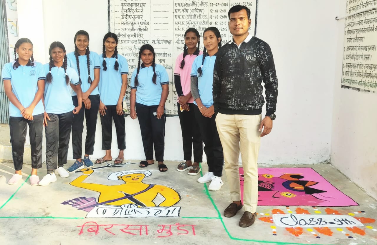 जनजातीय गौरव माह के तहत कोटेया में रंगोली प्रतियोगिता, आदिवासी विरासत पर छात्राओं ने बनाई अनेक आकर्षक रंगोली