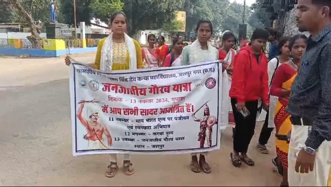 भगवान बिरसा मुंडा की जयंती के उपलक्ष्य पर जशपुर में 13 नवंबर को आयोजित भगवान बिरसा मुंडा ’’माटी के वीर पदयात्रा’’ कार्यक्रम में केंद्रीय युवा कार्यक्रम, खेल, श्रम एवं रोजगार मंत्री डॉ. मनसुख मांडविया मुख्य अतिथि एवं अध्यक्ष के तौर पर मुख्यमंत्री विष्णुदेव साय शामिल होगें और 10 हज़ार से अधिक माई भारत यूथ वालंटियर्स के साथ पदयात्रा करेंगे, कार्यक्रम को लेकर प्रशासन की तैयारी पूरी हों चुकि हैं.