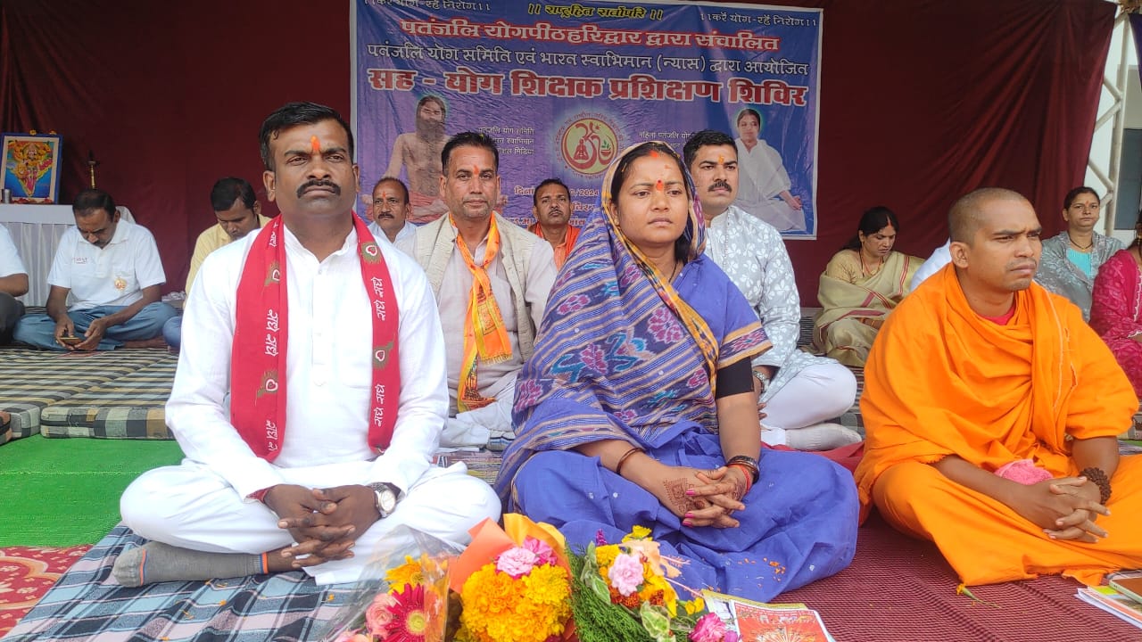 नीरज सिंह सूरजपुर – सूरजपुर योग ऋषि पूज्य स्वामी रामदेव जी महराज एवं आयुर्वेद के शिरोमणि पूज्य अचार्य बालकृष्ण जी की प्रेरणा से पतंजलि योग पीठ हरिद्वार के तत्वधान में संचालित पतंजलि योग समिति एवं भारत स्वाभिमान न्यास जिला सूरजपुर (छ.ग.) द्वारा शासकीय उच्चतर माध्यमिक विद्यालय भटगांव प्रांगण में आयोजित पच्चीस दिवसीय सह योग शिक्षक प्रशिक्षण शिविर का समापन एवं दीक्षांत समारोह के मुख्य अतिथि मंत्री श्रीमती लक्ष्मी राजवाड़े जी महिला बाल विकास एवं समाज कल्याण विभाग, माननीय श्री राम सेवक पैकरा जी पूर्व गृहमंत्री, डॉक्टर मनोज पाणिग्रही, राज्य प्रभारी पतंजलि योग समिति, श्री राम शर्मा जी सह राज्य प्रभारी किसान सेवा समिति, शैलेन्द्र विशी अध्यक्ष छत्तीसगढ़ योग एसोसिएशन , विदुषी श्री निधि श्री जी, श्री कमलेश सोनी जी संभाग प्रभारी भारत स्वाभिमान न्यास गरिमामई उपस्थिति में संपन्न हुआ।